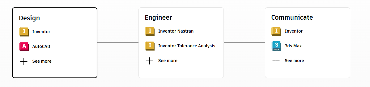Explore the toolkit that helps you solve more interesting problems. The collection includes top design software plus additional tools for analysis and simulation, visualization, reality capture, detailing, and automation.